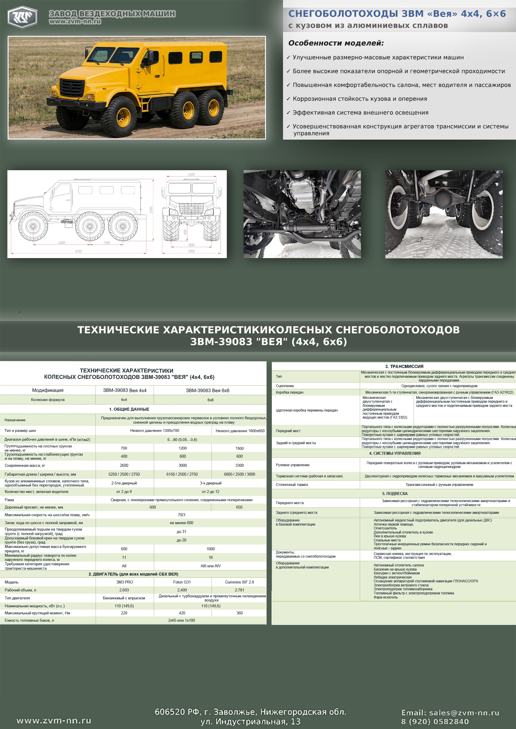 The family of wheeled snow and swamp-going vehicles on low-pressure tires under the general name "Veya" ZVM-39083 unites vehicles with 4x4 and 6x6 wheel arrangements.